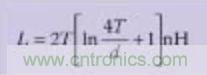 帶狀電感是另外一種需要考慮的寄生效應(yīng),它是由于印制線過長(zhǎng)或缺乏接地平面引起的。(公式二)顯示出計(jì)算印制線電感(Inductance)的公式。可參考(圖六)。