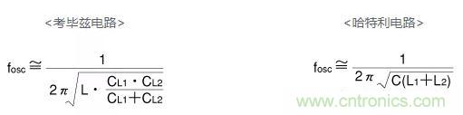 上述電路采用最基本的晶體管作為放大器??籍吰澓凸厝R電路的振蕩頻率幾乎與由L、CL1、L2組成的電路或由L1、L2組成的電路的諧振頻率相同。此類電路的振蕩頻率分別由以下公式表達(dá)。