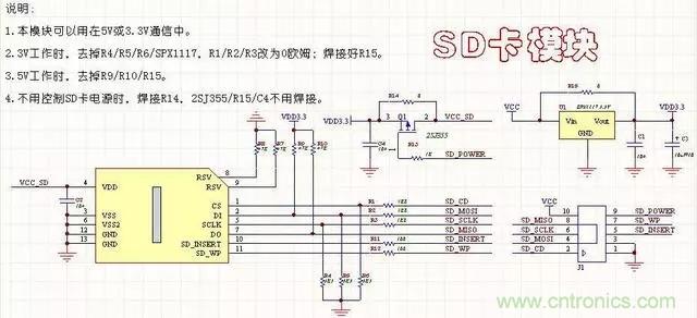 6、SD卡模塊電路(帶鎖)本電路與SD卡的封裝有關(guān),注意與封裝對應(yīng)。此電路可以通過端口控制SD卡的電源,比較完善,可以用于5V和3.3V。但是要注意,有些器件的使用,5V和3.3是不一樣的。