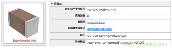 并非所有MLCC電容的供應(yīng)商都提供這種環(huán)氧樹(shù)脂安裝選項(xiàng),如Digi-Key代理的原廠中,有四家提供該選項(xiàng) - TDK, Murata, Vishay Vitramon和Knowles。