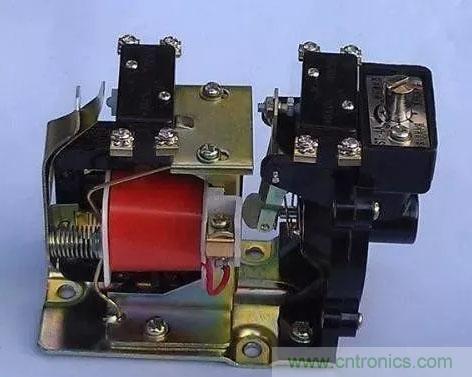 其中通電延時(shí)型時(shí)間繼電器動(dòng)作過程是:線圈不通電時(shí),線圈的銜鐵釋放壓住動(dòng)作杠桿,延時(shí)和瞬時(shí)觸點(diǎn)不動(dòng)作;當(dāng)線圈得電吸合后,銜鐵被吸合,銜鐵上的壓板首先將瞬時(shí)觸點(diǎn)按下,觸點(diǎn)動(dòng)作發(fā)出瞬時(shí)信號(hào)。這是因?yàn)殂曡F吸合動(dòng)作杠桿不受壓力,在助力彈簧作用下慢慢動(dòng)作(也就是延時(shí)),動(dòng)作到達(dá)最大位置杠桿上的壓板按動(dòng)延時(shí)觸點(diǎn),觸點(diǎn)動(dòng)作發(fā)出延時(shí)信號(hào),直至線圈無電釋放,動(dòng)作結(jié)束。其實(shí)物圖片如下圖:
