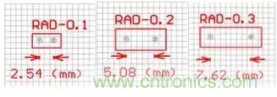 電解電容對(duì)應(yīng)的元器件封裝為RB系列,如“RB.1/.2”到“RB.5/1.0”,其中“.1/.2”分別指電容的焊盤間距和外形尺寸。