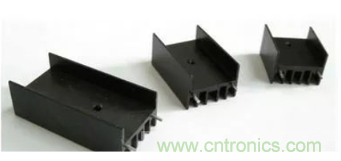 在實(shí)際使用過(guò)程中,用戶常常在穩(wěn)壓源上附加散熱片,以避免穩(wěn)壓源長(zhǎng)時(shí)間工作在大負(fù)載下,散熱條件不足,從而造成過(guò)高的溫升而損壞元器件和電路板,圖F1-17所示為常用的散熱片。