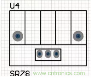 直插式元器件封裝的焊盤一般貫穿整個(gè)電路板,從頂層穿下,在底層進(jìn)行元器件的引腳焊接,如圖所示。