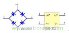 (6) 整流橋。普通整流橋的實(shí)物如圖F1-18(a)所示,常用名稱是“BRIDGE1”和“BRIDGE2”,如圖F1-18(b)所示,常用的封裝形式如圖F1-18(c)所示。