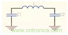 若經(jīng)過(guò)嚴(yán)格的物理理論推導(dǎo)和近似分析,可以把過(guò)孔的等效電路模型為一個(gè)電感兩端各串聯(lián)一個(gè)接地電容,如圖1所示。