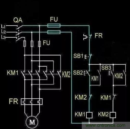 2,三相電動機正反轉(zhuǎn)控制電路。