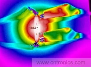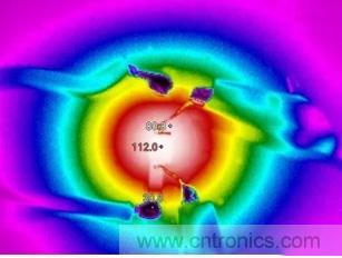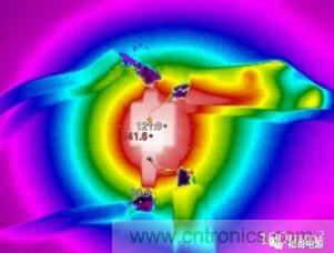 將10cmX10cm的二層PCB板的覆銅改為1OZ,重復(fù)上面實驗,測量的溫度如下圖所示。