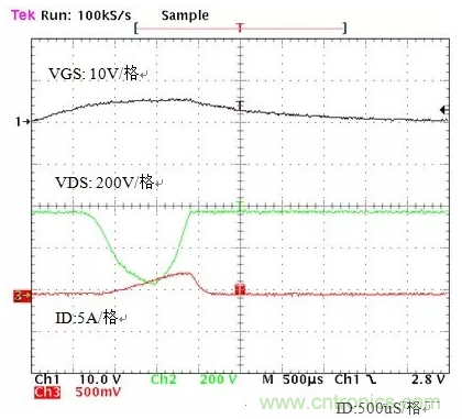 輸入端305Vac、220Vac進(jìn)行打火測試,滿載情況下,電感電流會進(jìn)入連續(xù)模式狀態(tài),MOSFET失效。