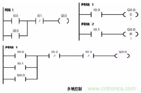 多輸出自鎖控制即多個(gè)負(fù)載自鎖輸出,有多種編程方法,可用置位、復(fù)位指令
