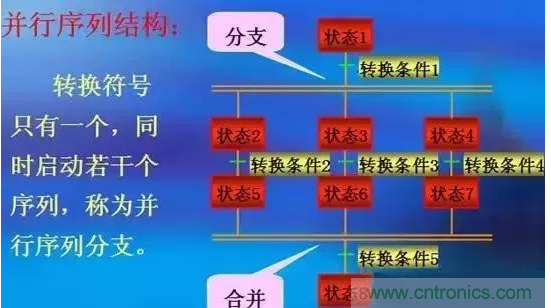 選擇序列的開(kāi)始稱為分支,轉(zhuǎn)換符號(hào)只能標(biāo)在水平線之下,每個(gè)分支上必須具有一個(gè)或一個(gè)以上的轉(zhuǎn)換條件,且具有優(yōu)先級(jí)。