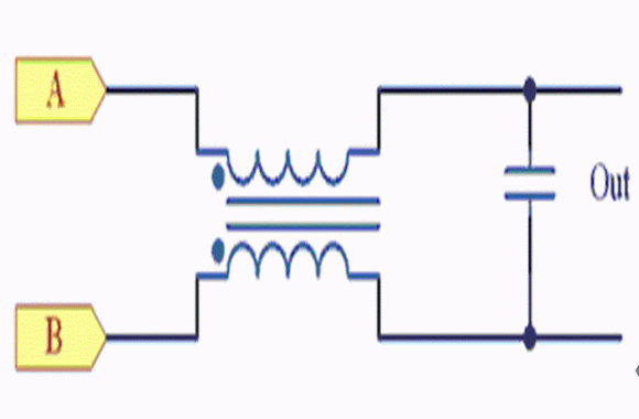 圖4中共模扼流圈的特殊繞制方法決定了它僅對(duì)共模電流有抑制作用,而對(duì)電路工作所需要的差模電流沒(méi)有影響。因此,共模扼流圈是解決共模干擾的理想器件。理想的共模扼流圈的低頻共模抑制作用較小,而隨著頻率的升高,抑制效果增加。這與平衡電路低頻共模抑制比高,隨著頻率升高平衡性變差,共模抑制比降低的特性正好相反,因此它們具有互補(bǔ)性。所以,在平衡電路中使用共模扼流圈后,電路可在較寬的頻率范圍內(nèi)保持較高的共模抑制比。