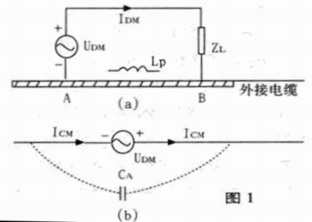由于共模電流ICM是由差模電流IDM產(chǎn)生的,所以這種模式稱電流驅(qū)動模式。以下舉二例說明電流驅(qū)動產(chǎn)生的共模輻射。