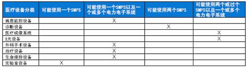 表2 電子醫(yī)療設備中SMPS和其他電力電子系統(tǒng)的使用
