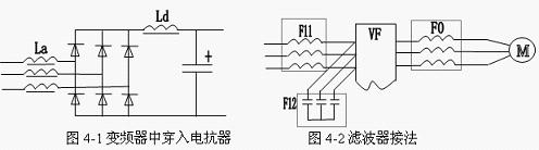 輸出濾波器:也主要由電感線圈構(gòu)成(如圖4-2中F0所示)。它可以有效地削弱輸出電流中的高次諧波成份,不但起到抗干擾作用,而且能削弱電機(jī)中高次諧波電流引起的附加轉(zhuǎn)矩。