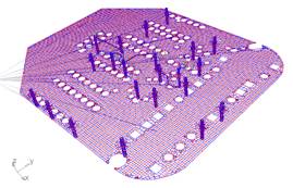 隨著當(dāng)今集成電路對供電穩(wěn)定性的要求,印制板設(shè)計工程師需要關(guān)注于低電壓、低翻轉(zhuǎn)門限與大電流、多層長線供電所造成的壓降。利用CST電磁工作室的穩(wěn)恒電流求解器可以仿真整個PCB的電壓分布,如圖15所示: