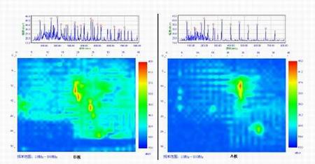 從圖7的頻譜圖中,可以看出,A板的質量明顯比B板好,因為: