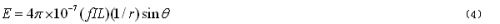 同時,由于接地電路中存在電壓降,某些部位具有高電位的共模電壓,當(dāng)外接電纜與這些部位連接時,就會在共模電壓激勵下產(chǎn)生共模電流,從而產(chǎn)生共模輻射干擾如式(4)表示: