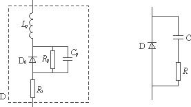 RC緩沖電路是解決功率二極管反向恢復(fù)問題的常用方法。在高頻下工作的功率二極管,要考慮寄生參數(shù)。圖7(a)為電路模型,其中D0為理想二極管,Lp為引線電感,Cp為結(jié)電容,Rp為并聯(lián)電阻(高阻值),Rs為引線電阻。如圖7(b)所示,將電容C和電阻R串聯(lián)后并聯(lián)到功率二極管D上。二極管反向關(guān)斷時,寄生電感中的能量對寄生電容充電,同時還通過緩沖電阻R對緩沖電容C充電。在同樣能量的情況下,緩沖電容越大,其上的電壓就越??;當(dāng)二極管正向?qū)〞r,C通過R放電,能量絕大部分在R上消耗。