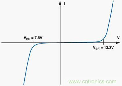 重要的是要確保TVS的擊穿電壓在受保護(hù)引腳的正常工作范圍之外。CDSOT23-SM712的獨(dú)有特性是具有+13.3 V和–7.5 V的非對稱擊穿電壓,與+12 V至–7 V的收發(fā)器共模范圍相匹配,從而提供最佳保護(hù),同時最大程度減小對ADM3485E RS-485收發(fā)器的過壓應(yīng)力。
