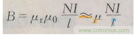 這個是做變壓器最基本的公式根據(jù),但是表示的不對,應該表示為B=(磁導率/磁路)*(NI);