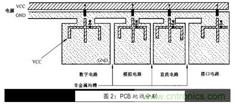 分割是指用物理上的分割來(lái)減少不同類(lèi)型線之間的耦合,尤其是通過(guò)電源線和地線的耦合。