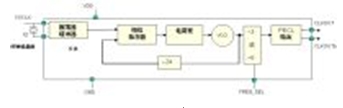 與晶體振蕩器相比,PLL合成器是一種更為復(fù)雜的系統(tǒng)時(shí)鐘源。其中,單從PLL來講,它通常由相頻檢測(cè)器(PFD)、電荷泵、低通濾波器 (LPF)和壓控振蕩器(VCO)等組成。而通用的PLL合成器時(shí)鐘產(chǎn)生器一般需要外部晶體以及放大反向器,并再通過完全集成的PLL和邏輯電路來完成。PLL合成器還可以實(shí)現(xiàn)其它更高的功能和特性,如晶體頻率倍頻、輸出相位校準(zhǔn)、多個(gè)輸出副本和對(duì)輸出進(jìn)行分頻等。圖3顯示 的是典型PLL合成器的結(jié)構(gòu)示意圖。