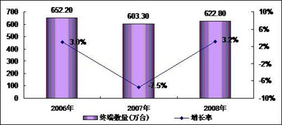 2009年3月5日,中國權(quán)威ICT研究與管理咨詢機(jī)構(gòu)賽迪顧問股份有限公司在“2009中國消費(fèi)電子市場年會”上發(fā)布《2008-2009年中國便攜式電子學(xué)習(xí)產(chǎn)品市場研究年度報告》顯示:中國便攜式電子學(xué)習(xí)產(chǎn)品市場在經(jīng)歷了產(chǎn)品發(fā)展初期的市場混亂之后, 各品牌廠商更為注重產(chǎn)品的市場推廣和發(fā)展,中國便攜式電子學(xué)習(xí)產(chǎn)品市場逐漸走向成熟與理性。2008年,中國便攜式電子學(xué)習(xí)產(chǎn)品市場銷量為622.8萬臺,同比增長為3.2%;銷售額為44.0億元,較2007年同期增長0.5%。2008年全年,中國便攜式電子學(xué)習(xí)產(chǎn)品市場總體比較平穩(wěn),其中數(shù)碼學(xué)習(xí)機(jī)市場較2007年同期有所下滑,而電子詞典市場呈平穩(wěn)增長之勢。