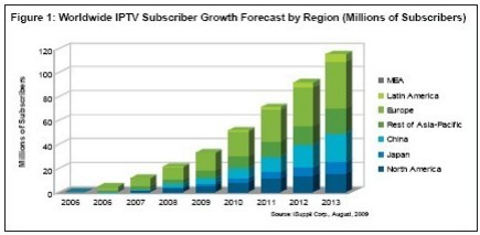 由于未來五年用戶數(shù)量有如此巨大的增長潛力, 電信運(yùn)營商都在迅速推出 IPTV 和三重服務(wù), 同時(shí)在研究如何使這些業(yè)務(wù)更能吸引現(xiàn)有的以及未來的用戶。