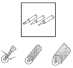 選擇正確的烙鐵頭尺寸和形狀是非常重要的,選擇合適的烙鐵頭能使工作更有效率及增加烙鐵頭之耐用程度。選擇錯(cuò)誤的烙鐵頭會(huì)影響焊鐵不能發(fā)揮最高效率,焊接質(zhì)量也會(huì)因此而減低。(圖9)