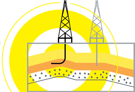 在深達(dá)大約3000多米的巖層之下,蘊(yùn)藏著數(shù)萬(wàn)億立方英尺的天然氣,但普通的鉆井根本無(wú)法鉆取。解決辦法是沿著巖層進(jìn)行水平鉆探,即首先鉆出垂直鉆井,到 達(dá)天然氣層后再90度大轉(zhuǎn)彎實(shí)施水平鉆探。目前這只是個(gè)技術(shù)的概念。但美國(guó)第三大天然氣生產(chǎn)商切薩皮克能源公司計(jì)劃到2010年底將水平鉆井?dāng)?shù)量提高到 40個(gè)。