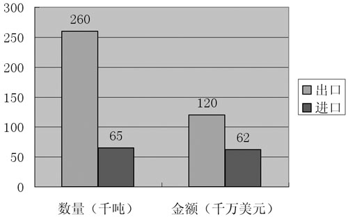 2008年中國磁性材料進(jìn)出口數(shù)量和金額