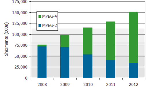 - 估計(jì)2010年附有MPEG-4 解碼器電視出貨量將超過MPEG-2