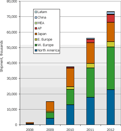 - 3D TV將由2009年的20萬臺(tái)成長(zhǎng)到2018年的640萬臺(tái)