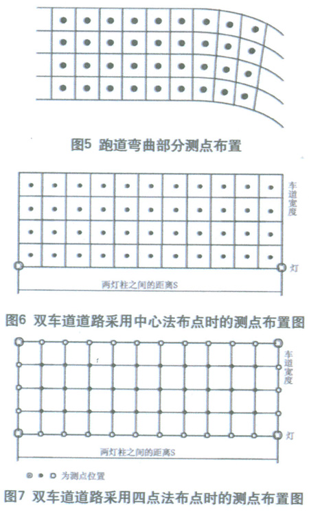 照度測量的范圍,在縱方向(沿道路走向)應(yīng)包括同一側(cè)的兩個燈桿之間的區(qū)域;而在橫方向,單側(cè)布燈時應(yīng)為整個路寬;雙側(cè)交錯布燈、對稱布燈或中心布燈時可為1/2路寬。