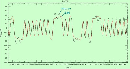 3. 使用HSPICE仿真背板系統(tǒng):PCIe顯卡發(fā)送出的信號(hào)通過SMA電纜連接到示波器,即直接測量發(fā)送端的波形,保存波形為文本格式后,修改為HSPICE的PWL格式的信號(hào)源,放入HSPICE仿真器中作為驅(qū)動(dòng)端,把背板(即24英寸傳輸線)的S參數(shù)文件調(diào)入HSPICE軟件,接收端為2個(gè)50歐電阻,用HSPICE仿真出接收端上的電壓波形(注:仿真使用的HSPICE版本為2008.03)。