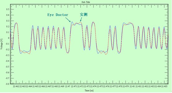眼圖醫(yī)生軟件在信道仿真的原理為:根據(jù)信道的S參數(shù)模型生成幾個(gè)FIR濾波器(比如2端口S參數(shù)模型生成4個(gè)FIR濾波器,關(guān)于FIR濾波器可以在網(wǎng)上搜索“有限沖激響應(yīng) wiki”查詢到相關(guān)知識(shí)介紹,輸入信號(hào)與FIR濾波器的沖激響應(yīng)卷積后即可得到通過信道后的輸出信號(hào)(比如接收端的信號(hào)),其中FIR濾波器的準(zhǔn)確性決定了信道仿真的精度,在眼圖醫(yī)生軟件中,通過缺省的FIR濾波器優(yōu)化算法,可以保證在全頻帶的仿真結(jié)果接近實(shí)測結(jié)果。從圖8的波形對(duì)比可以看到力科眼圖醫(yī)生的準(zhǔn)確性。