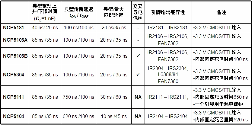 表1:安森美半導體用于高端MOSFET驅(qū)動的硅驅(qū)動器相互參照。