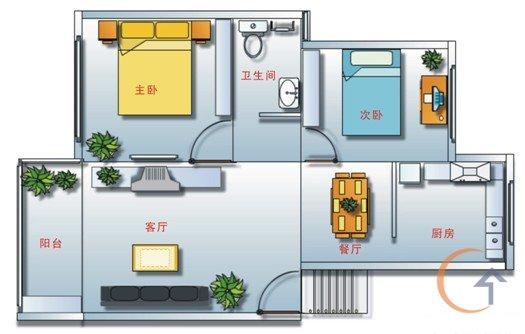 本項(xiàng)目為一套2室2廳,室內(nèi)建筑格局為:客廳、餐廳、廚房、次臥、主臥、衛(wèi)生間、陽(yáng)臺(tái),如圖1所示:
