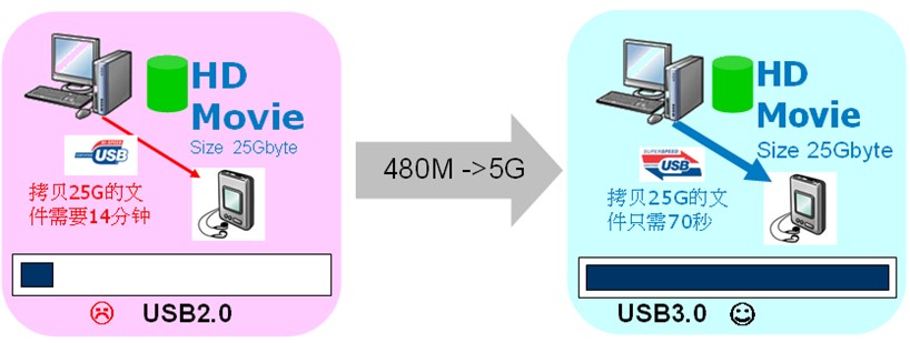 圖1:USB2.0與USB3.0的速度對(duì)比