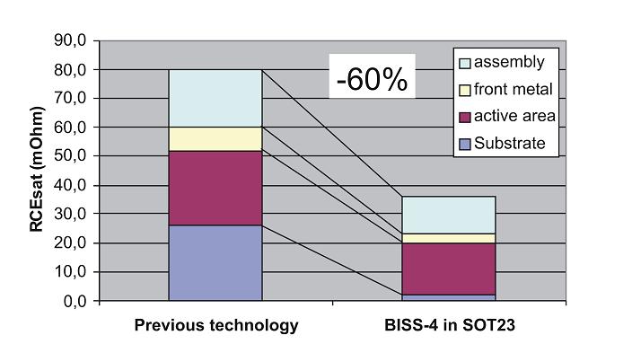 由于雙極晶體管電阻受多重因素影響,開(kāi)發(fā)新型中功率雙極晶體管需要認(rèn)真評(píng)估完整的晶體管架構(gòu)(選材、芯片設(shè)計(jì)、芯片金屬化、芯片/封裝連接和封裝架構(gòu))。第四代BISS雙極晶體管系列共分兩類。
