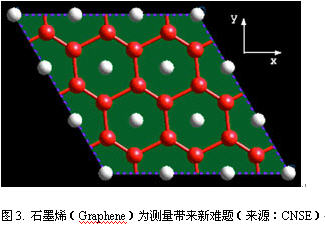 石墨烯是一種穩(wěn)定材料,也是一種禁帶寬度幾乎為零的半金屬/半導(dǎo)體材料。它具有比硅高得多的載流子遷移率(200000cm2/V),在室溫下有微米級的平均自由程和很長的相干長度。因此,石墨烯是納米電路的理想材料,也是驗(yàn)證量子效應(yīng)的理想材料。然而這種材料也非常難以測量(圖3)。石墨稀顯微鏡是測量該新材料的必要手段。關(guān)鍵問題之一是單個(gè)樣品和多層樣品中石墨稀的層數(shù)。TEM和低能電子顯微鏡(LEEM)是確定層數(shù)的重要檢測設(shè)備,多層切片模擬式確定TEM檢測能力和成像條件的有效方式。LEEM可以檢測層數(shù)及樣品的形貌。