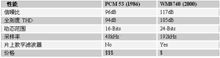 在過去的15年里,ADC和DAC系統(tǒng)的性能一直在穩(wěn)定地增長。下面的音頻DAC表簡要列出了今天最先進的DAC和1986年最先進的DAC之間的性能比較?,F(xiàn)在,將廣泛的數(shù)字濾波技術(shù)集成進今天的DAC轉(zhuǎn)換器中不僅在技術(shù)上是可行的,而且也非常經(jīng)濟。如WolfsonMicroelectronics公司的DAC器件WM8740具有完全支持最新DVD-Audio標準、CD和其它使用PCM格式數(shù)據(jù)的數(shù)字音頻系統(tǒng)的架構(gòu)。