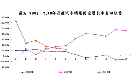 2010年上半年,汽車(chē)產(chǎn)銷市場(chǎng)增速自3月以來(lái)呈逐月回落態(tài)勢(shì),但總體保持較高增長(zhǎng)勢(shì)頭;汽車(chē)行業(yè)整體經(jīng)濟(jì)效益保持良好的發(fā)展態(tài)勢(shì)。