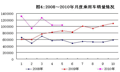 2010年1-5月,汽車(chē)行業(yè)規(guī)模以上企業(yè)累計(jì)完成工業(yè)總產(chǎn)值17110.01億元,同比增長(zhǎng)54%;累計(jì)實(shí)現(xiàn)主營(yíng)業(yè)務(wù)收入17119.54億元,同比增長(zhǎng)60%;累計(jì)實(shí)現(xiàn)利潤(rùn)總額1436.47億元,同比增長(zhǎng)143%。