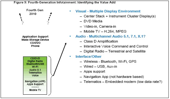 據(jù)iSuppli公司,第四代設(shè)計架構(gòu)今年開始得到采用,正在改變汽車信息娛樂領(lǐng)域的供應(yīng)與消費模式,消費者對汽車電子的影響力比以前更大。