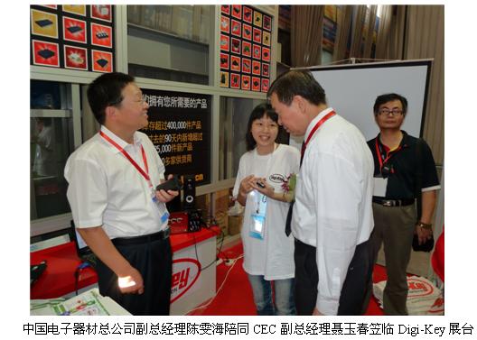 電子展開(kāi)幕后,中國(guó)電子器材總公司副總經(jīng)理陳雯海陪同中國(guó)電子信息產(chǎn)業(yè)集團(tuán)有限公司副總經(jīng)理聶玉春蒞臨Digi-Key的展臺(tái),了解Digi-Key的小批量采購(gòu)服務(wù),歡迎Digi-Key為西部的工程師提供方便快捷的小批量采購(gòu)服務(wù),并衷心希望Digi-Key在中國(guó)有更好的發(fā)展。