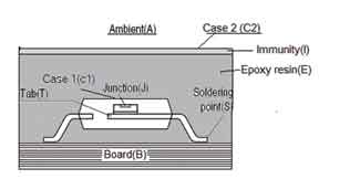 RthJA=[(RthJC1+RthC1E+RthEI+RthIC2+RthC2A)•(RthJT+RthTS+RthSB+RthBA)]/[(RthJC1+RthC1E+RthEI+RthIC2+RthC2A)+