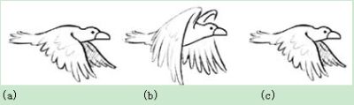 圖11:自適應(yīng)3D梳狀濾波器依賴解碼器來(lái)正確檢測(cè)圖像移動(dòng)。這是鳥舞動(dòng)翅膀的正常順序-向下(a),向上(b),再向下(c)。