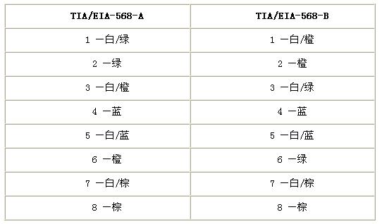 線序排列的標(biāo)準(zhǔn)有兩個,即TIA/EIA-568-A標(biāo)準(zhǔn)和TIA/EIA-568-B標(biāo)準(zhǔn)。